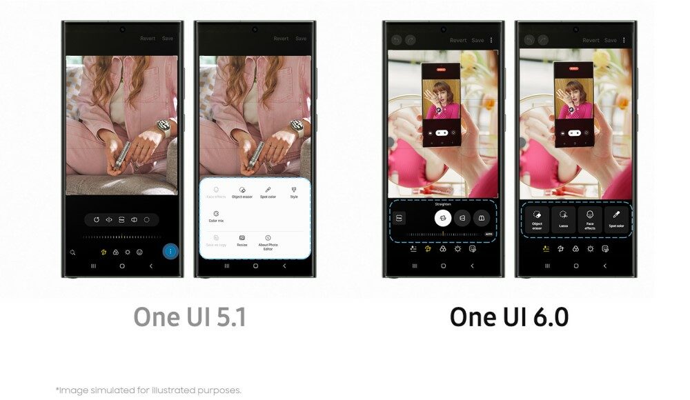 #6. Disposition intuitive de l’éditeur de photos : One UI 6 apporte un nouveau menu Outils amélioré à l’appareil photo Galaxy, il est donc facile de trouver et de sélectionner les fonctionnalités d’édition que vous utilisez le plus. De plus, vous pouvez désormais corriger l’alignement vertical et horizontal de votre photo sur un seul écran pratique, grâce à l’intégration des fonctions Redresser et Perspective dans le menu d’édition Transformer.