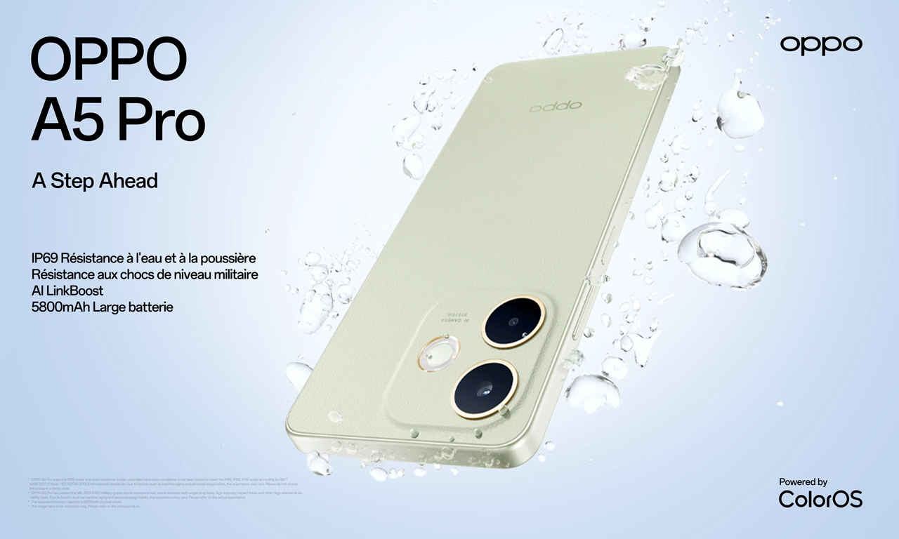 Événement majeur sur le marché tunisien de la téléphonie mobile ! OPPO vient d’annoncer en grande pompe l’arrivée imminente de son tout nouveau OPPO A5 Pro, un smartphone qui promet de redéfinir les attentes en matière de robustesse, de design et de performance. Oubliez les compromis : l’OPPO A5 Pro est conçu pour accompagner les utilisateurs les plus actifs, les aventuriers du quotidien et les passionnés de divertissement, sans jamais faillir. Ce lancement marque une étape cruciale pour la série A d’OPPO, plaçant la barre encore plus haut en combinant une esthétique soignée avec une résistance à toute épreuve.