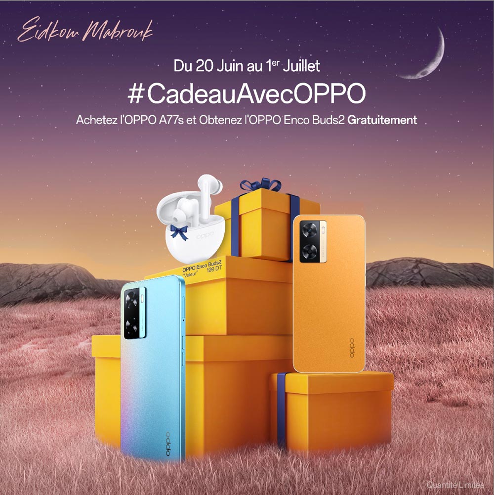 A l’occasion des fêtes de l’Aïd EL IDHA, OPPO annonce une promotion spéciale en Tunisie, du 20 juin au 1er juillet 2023, faisant gagner une paire d’écouteurs sans fil Enco Buds2 pour tout achat d’un smartphone A77s.