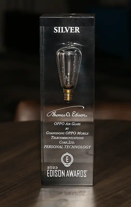Lors des prix de cette année, qui ont eu lieu en Floride le 20 avril 2023, Air Glass d’OPPO s’est démarqué de la compétition en remportant le trophée d’argent dans la catégorie AR aux Edison Best New Product AwardsTM 2023. Les juges ont souligné à la fois la conception innovante et les technologies auto-développées comme des facteurs clés dans leur décision d’attribuer l’honneur à OPPO Air Glass.