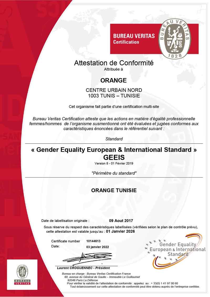 En 2017, Orange Tunisie a obtenu la certification internationale Gender Equality European