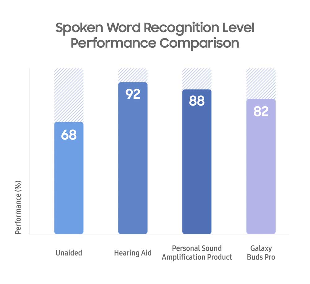 L’étude a évalué l’efficacité d’une aide auditive, d’un produit d’amplification sonore personnelle et des Galaxy Buds Pro. Selon les auteurs, aucune autre étude n’a encore inclus les véritables écouteurs sans fil dans l’évaluation de la performance clinique des appareils auditifs. L’étude est la première à démontrer l’avantage potentiel des écouteurs sans fil pour les personnes souffrant de déficiences auditives légères à moyennes et peut améliorer la vie de 1,5 milliard de personnes dans le monde qui vivent actuellement avec un certain degré de perte auditive.