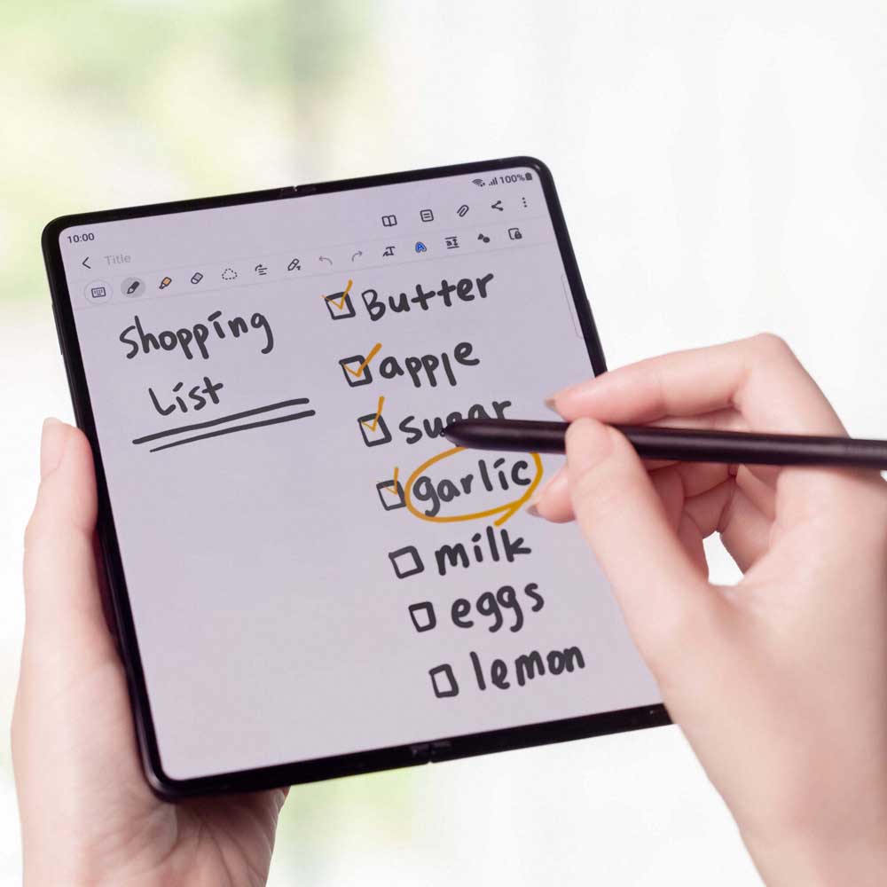 Pour la toute première fois sur la série Galaxy Z, Samsung apporte la technologie de sa série Note bien-aimée au Z Fold3 – la fonctionnalité S Pen. Les utilisateurs peuvent profiter de fonctions S Pen entièrement optimisées sur leur écran pliable, ce qui convient parfaitement aux multitâches en déplacement. Sur l’écran principal massif du Z Fold3, il est plus facile que jamais pour les utilisateurs de prendre des notes pendant un appel vidéo ou de vérifier une liste de choses à faire tout en lisant des e-mails, et les utilisateurs du Z Fold3 peuvent également stimuler leur créativité et leur productivité avec notre stylo S Pen, très apprécié des fans. Le S Pen pour Z Fold3 est disponible en deux options : S Pen Fold Edition et S Pen Pro. Tous deux sont dotés d’un embout Pro rétractable spécialement conçu avec une technologie de limitation de la force pour protéger l’écran principal du Z Fold3 et assurer la tranquillité d’esprit lors de l’utilisation du S Pen. Il s’agit de la meilleure expérience S Pen de Samsung à ce jour, avec une latence encore plus légère pour une composition plus vraie que nature, ce qui garantit que la prise de notes et l’envoi de messages sont transparents et intuitifs.