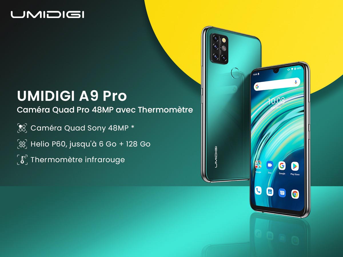 UMIDIGI Tunisie vient d’annoncer la sortie du UMIDIGI A9 Pro en Tunisie, un smartphone disposant un thermomètre infrarouge, une Quad caméra Sony 48MP, et un processeur Octa-Core puissant de 6 Go + 128 Go ainsi que UMIDIGI A7, un smartphone disposant une Quad caméra Ultra Wide Macro AI, grand écran de 6,49 po, et un processeur Octa-Core puissant de 4 Go + 64 Go.