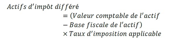 Les DTA n’étant recouvrables qu’en présence d’un bénéfice imposable, leur valeur comptable doit être revue à chaque date de clôture et réduite si les prévisions de bénéfice imposable futur se dégradent7. Algébriquement, les actifs d’impôt différé peuvent être exprimés comme suit :