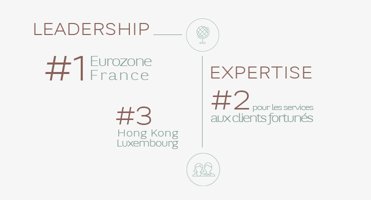 Grâce à la qualité de nos services dédiés à des segments de clientèle spécifiques, nous confirmons également notre position de leader dans plusieurs pays européens, y compris au Luxembourg (#1 pour les services aux clients fortunés (1 M $ – 5 M $) et en France (pour les pour les services aux clients fortunés à ultra-fortunés), et sommes classés 2è au niveau global pour les services aux clients fortunés.