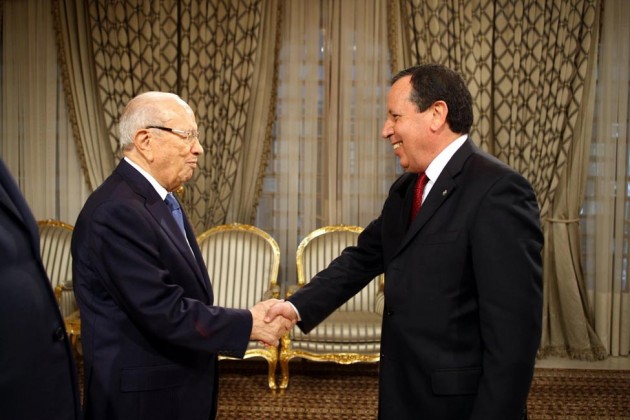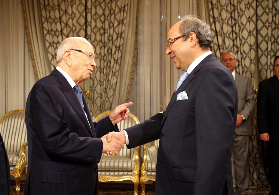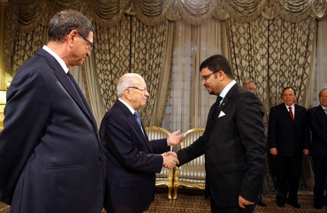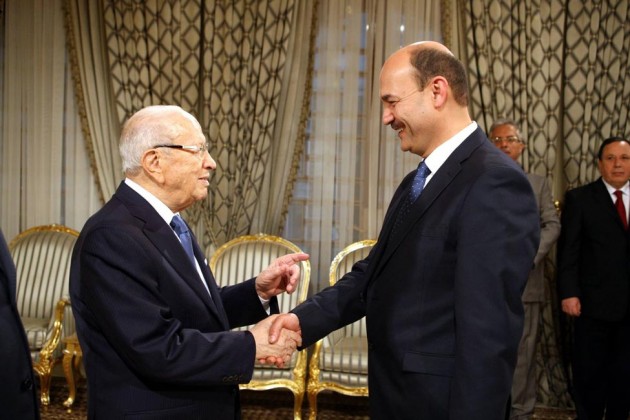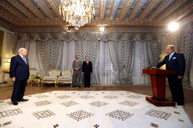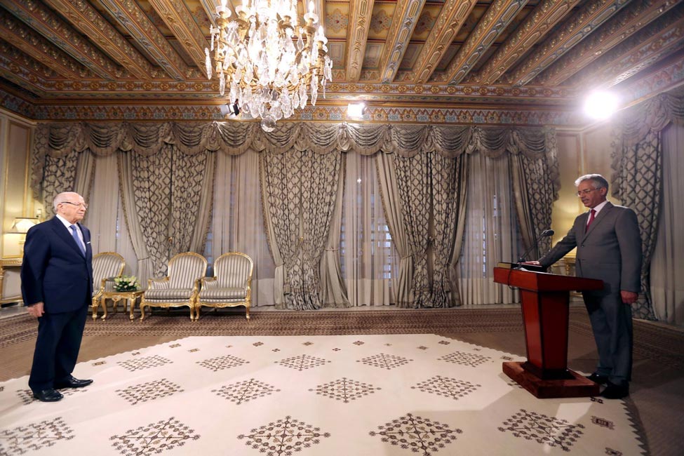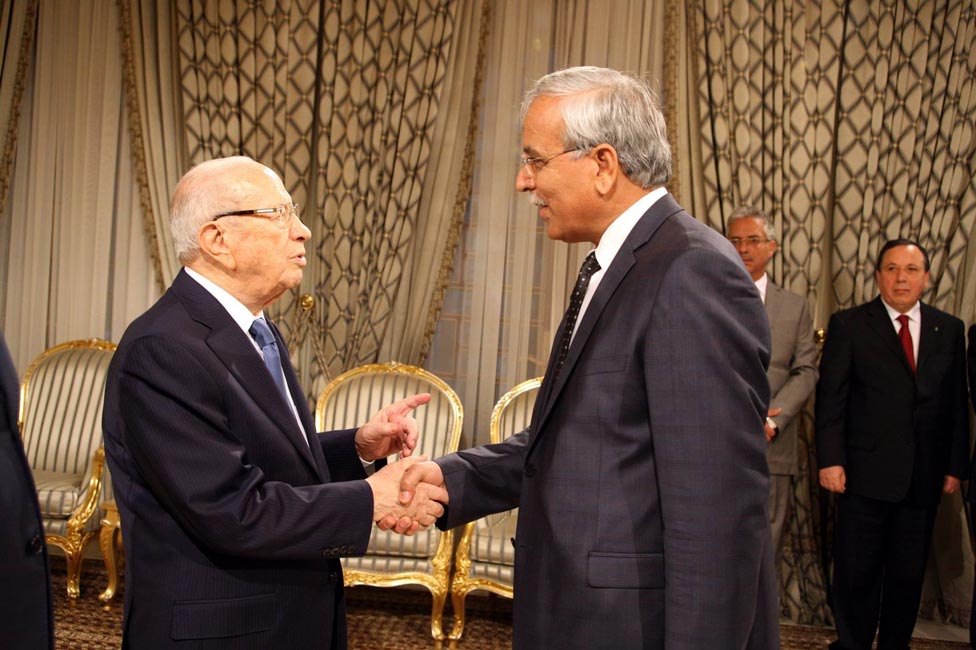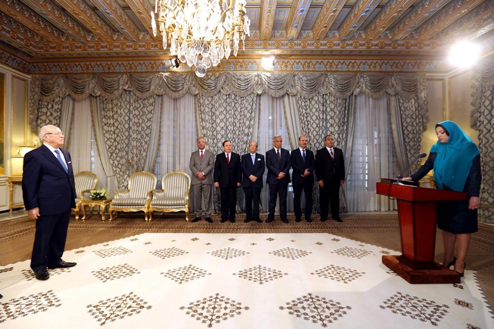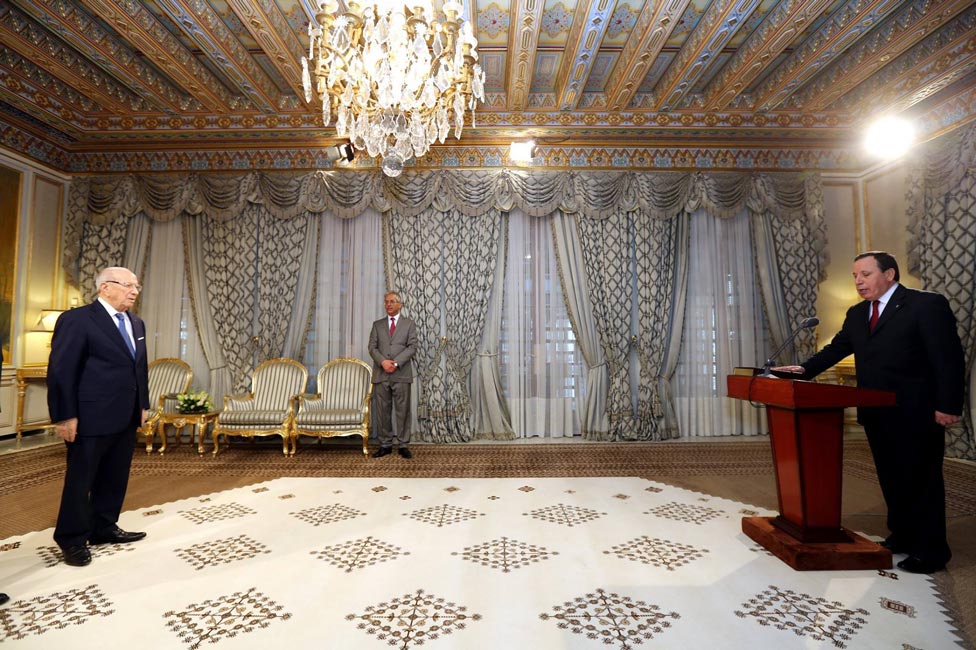 أشرف رئيس الجمهورية الباجي قايد السبسي صباح اليوم الثلاثاء 12 جانفي 2016 بقصر بقرطاج على موكب أدى خلاله أعضاء الحكومة الجدد اليمين الدستورية، وذلك بحضور رئيس الحكومة الحبيب الصيد، وهم:- عمر منصور: وزير العدل- خميس الجهيناوي: وزير الشؤون الخارجية- محمد خليل: وزير الشؤون الدينية- كمال العيادي: وزير الوظيفة العمومية والحوكمة ومكافحة الفساد- منجي مرزوق: وزير الطاقة والمناجم- محسن حسن: وزير التجارة- سنية مبارك: وزيرة الثقافة والمحافظة على التراث- خالد شوكات: وزير لدى رئيس الحكومة مكلف بالعلاقة مع مجلس نواب الشعب والناطق الرسمي بإسم الحكومة.