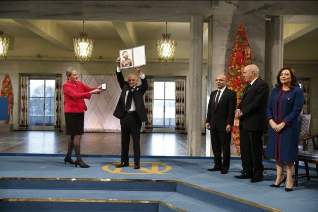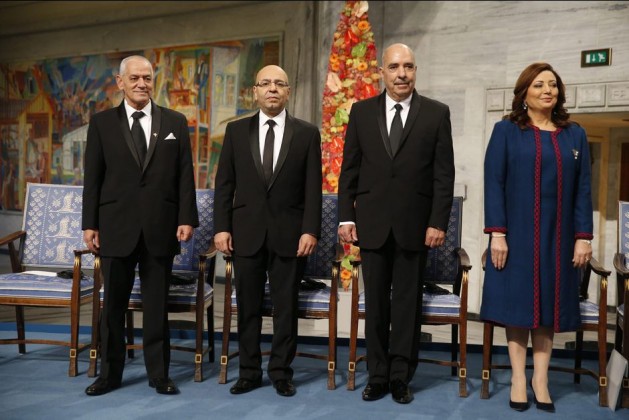 Le quartet pour le dialogue national tunisien, qui a été désigné octobre prix Nobel de la paix 2015, l’a reçu ce jeudi à Oslo. Les lauréats, Houcine Abassi, secrétaire général du puissant syndicat UGTT, Wided Bouchamaoui, présidente de l’organisation patronale l’Union tunisienne de l’industrie, du commerce et de l’artisanat (Utica, le «medef tunisien»), Abessatar Ben Moussa, président de la Ligue tunisienne des droits de l’Homme, et Fadhel Mahfoudh, bâtonnier de l’Ordre national des avocats, ont appelé la communauté internationale à faire de la lutte contre le terrorisme « une priorité absolue ». « Aujourd’hui, nous avons grandement besoin d’un dialogue entre les civilisations et d’une coexistence pacifique dans le respect de la diversité et de la différence. Aujourd’hui, nous avons besoin de faire de la lutte contre le terrorisme une priorité absolue », a déclaré Houcine Abassi. Il a aussi dénoncé les « actes terroristes barbares et haineux » perpétrés ces derniers mois en Tunisie et à travers le monde, de Paris à Beyrouth et de Charm el-Sheikh à Bamako.Évoquant elle aussi ces attaques, la présidente du comité Nobel, Kaci Kullmann Five, a estimé qu’elles nécessitaient une réponse unie de la communauté internationale. « Parce que la menace est essentiellement la même pour nous tous, nous devons nous rassembler pour la combattre », a-t-elle dit devant un parterre de personnalités, dont le roi Harald de Norvège, réunies à l’Hôtel de ville d’Oslo.