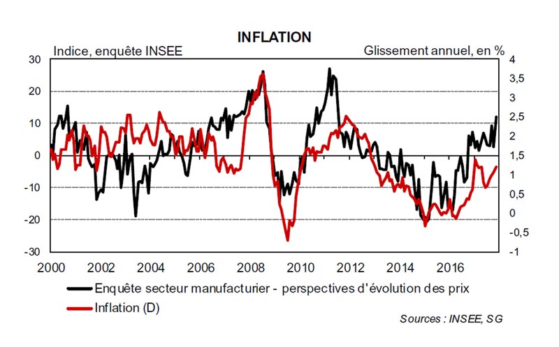 La croissance est demeurée forte au T3-17 (0,5 % T/T après 0,6 % au T2), grâce au dynamisme de la demande intérieure et notamment de l’investissement. Le très bon niveau des indices de confiance suggère un maintien de ce dynamisme à court terme.